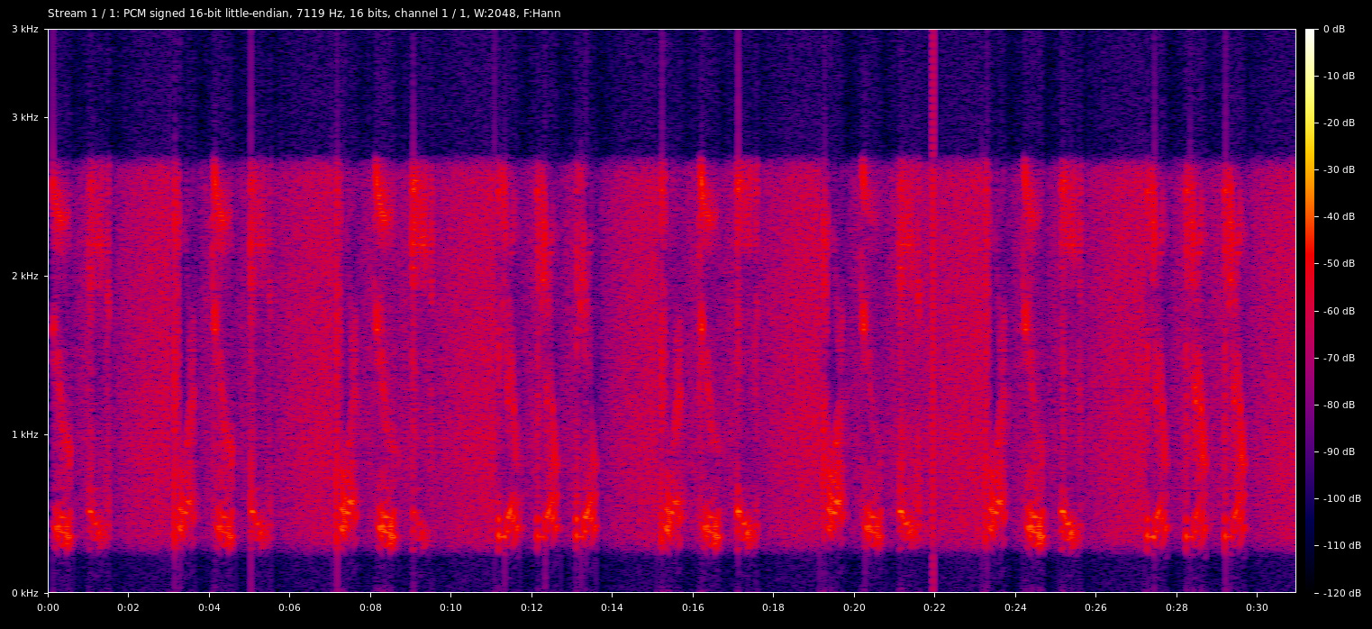 Frequency Axis (y-axis: 0 to 4 kHz): This is the baseband audio bandwidth post-demodulation (we did set our SDR receiver, already to the correct mode in this case), consistent with single-sideband (SSB) or vestigial sideband modes on HF, where the full signal occupies ~3-4 kHz. No evidence of wider bandwidth (e.g., >8 kHz for FM broadcast).